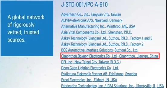 2021年1月5日,位于常州市的電子制造服務(wù)商常州博康電子技術(shù)有限公司經(jīng)過(guò)近半年的工藝制程優(yōu)化,依照IPC J-STD-001《焊接的電氣與電子組件要求》與IPC-A-610《電子組件的可接受性》對(duì)工藝制程和產(chǎn)品的要求,順利通過(guò)IPC QML認(rèn)證,而榮列IPC全球可信資源庫(kù)。